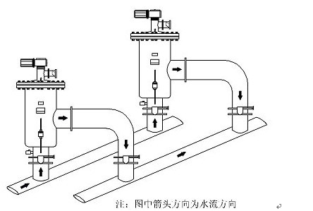 (3)自清洗過濾器應(yīng)安裝在需要保護的用水設(shè)備之前,并盡量靠近用水設(shè)備。